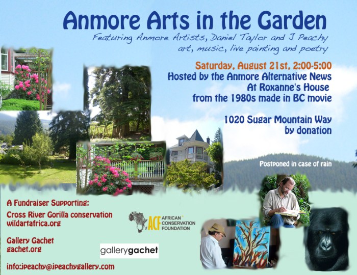 The first celebration of the ‘Anmore Arts in the Garden, event will be held at Roxanne’s house, 1020 Sugar Mountain Way, in Anmore BC, on Saturday August 21st between 2-5pm. The event will feature internationally renowned high realist painter Daniel Taylor and local Arts based advocate for Mental Health J Peachy, both of whom are based in Anmore. In addition, there will be other emerging and established artists who will be participating including Monika Blichar, Vicky Rae, Joe Sala and Lori Motokado. The stroll through the Gardens will be enhanced by live musical performance by local musicians David Blair and Alexander Keurvorst.