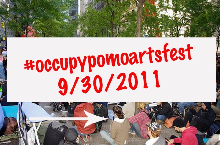 The hashtag #occupypomoartsfest was inspired by the people’s movement in New York #occupywallstreet. A number of the same princples will apply, how it manifests itself is something that we will reveal itself.